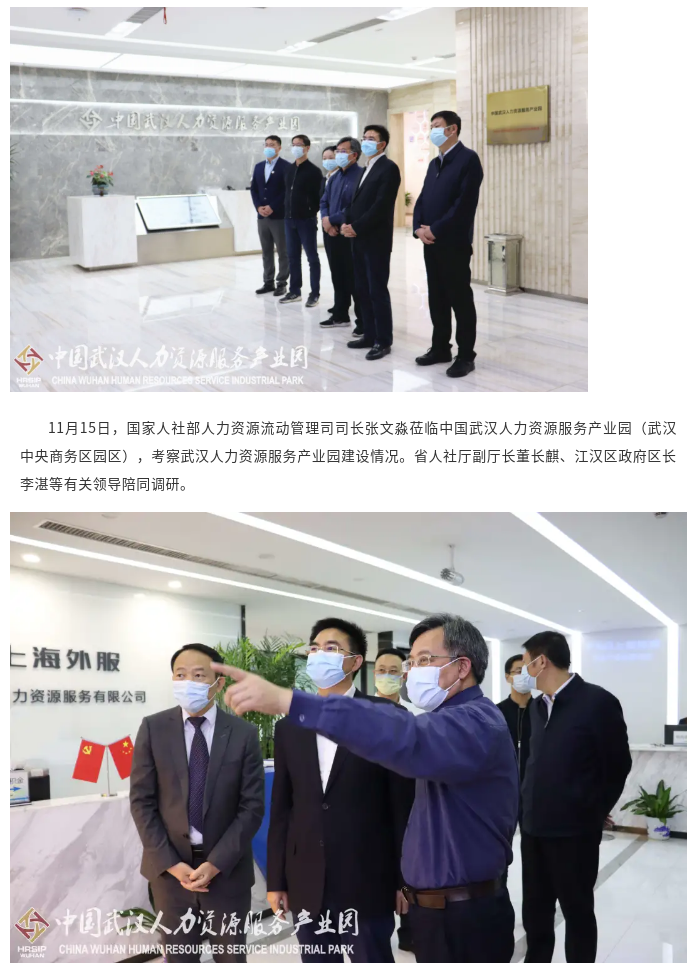 国家人社部人力资源流动管理司司长张文淼考察武汉人力资源服务产业园建设工作