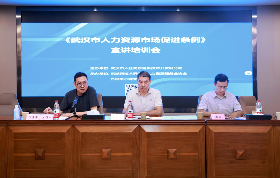 为做好《武汉市人力资源市场促进条例》学习宣传工作,进一步提升东湖高新区人力资源服务从业人员政策水平和业务素质,更好推动条例贯彻实施。7月24日,武汉市人社局东湖新技术开发区分局在光谷科技大厦举行东湖高新区《武汉市人力资源市场促进条例》宣讲培训会,东湖分局二级调研员胡忠礼,就业科、监察科负责人和区人力资源协会及80余家人力资源服务机构代表参加了会议。